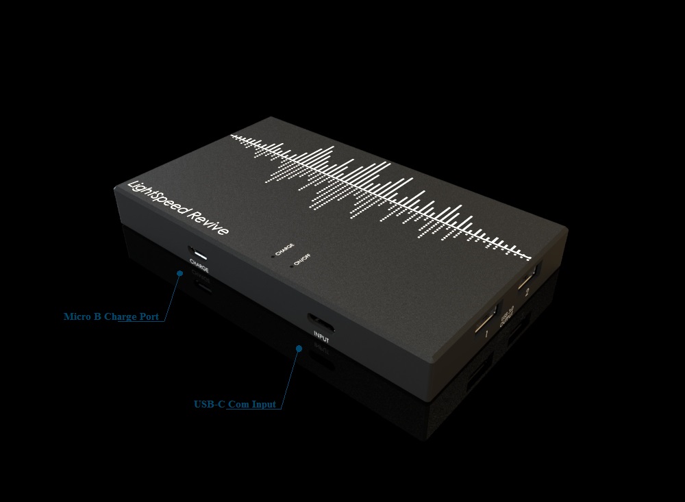 To connect your DAC to your Lightspeed Revive, connect a USB cable to a " USB-A 3.0 Output" port found on the bottom of the Revive. (image found below)